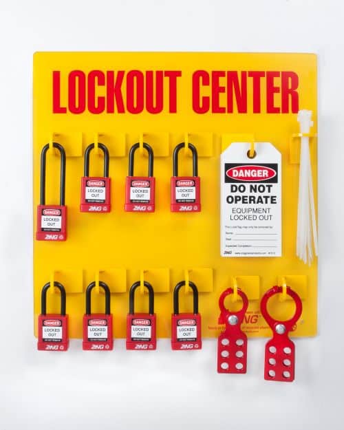7114 Lockout/Tagout Station provides easy access to locks, hasps, tags and cable ties. The station accommodates padlocks with a shackle length of 1.5 ” or 3 “, and the unique hooks can store two padlocks or hasps each. Padlocks can also be locked to the hooks for extra security. The station is made in the USA from eco-friendly, impact-resistant plastic and is UL Validated for recycled content. The station measures 15″H x 15″W and includes 30 components: (7) 1.5 ” Padlocks, (1) 3 ” Shackle Padlock, (1) 1 ” Steel Hasp, (1) 1.5 ” Steel Hasp, (10) Lockout Tags, (10) Cable Ties